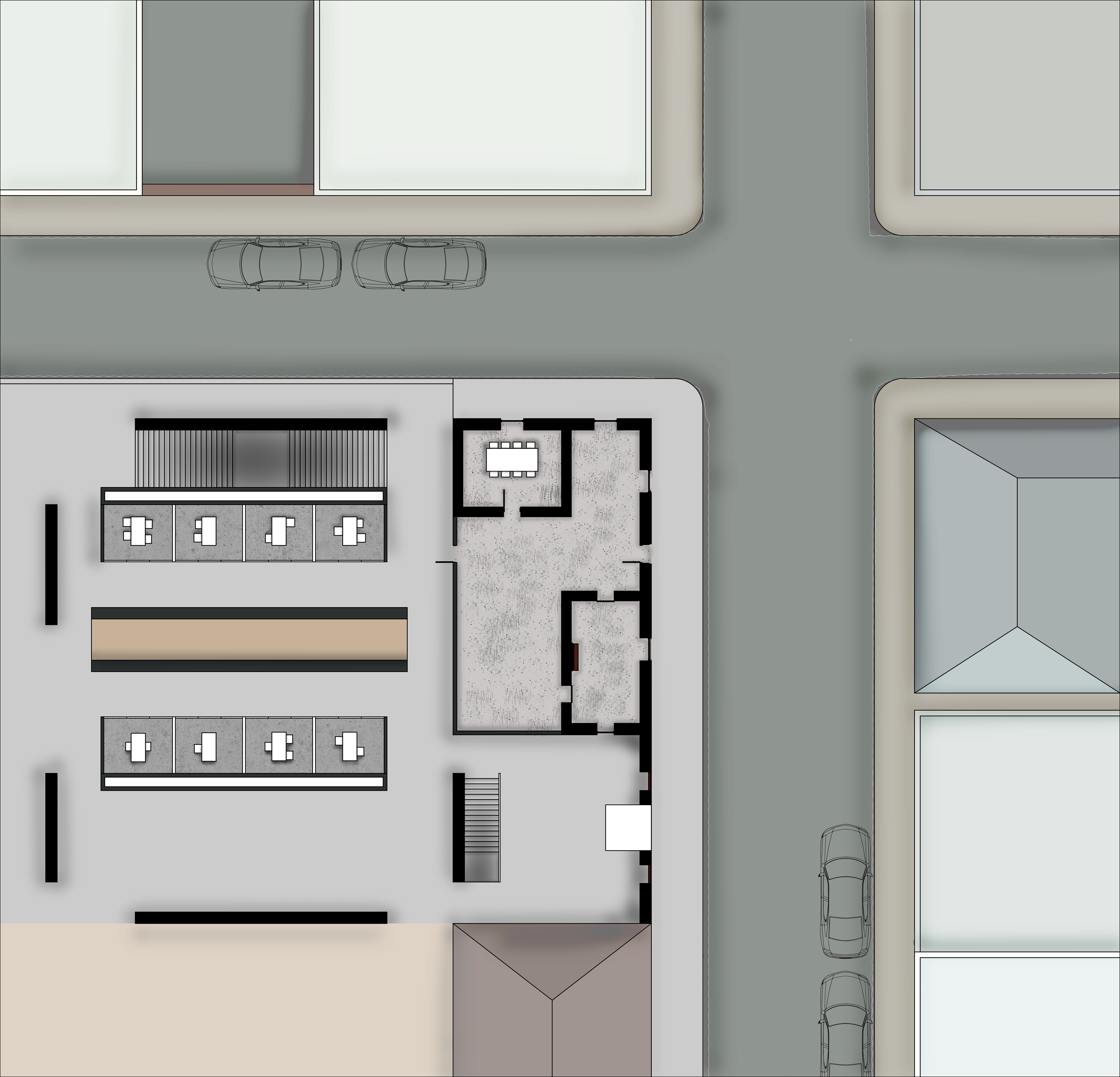 In the historic Barrio neighborhood of Tucson is a new fashion design centered incubator to help local, up and coming, artists with manufacturing and skills to help them grow their business. Utilizing an existing building and lot to fit the new program. While incorporating this new program, it was important to respect the surrounding neighborhood and building styles. Looking closely at the roof types and courtyards, I felt it was critical to incorporate those aspects into the project.