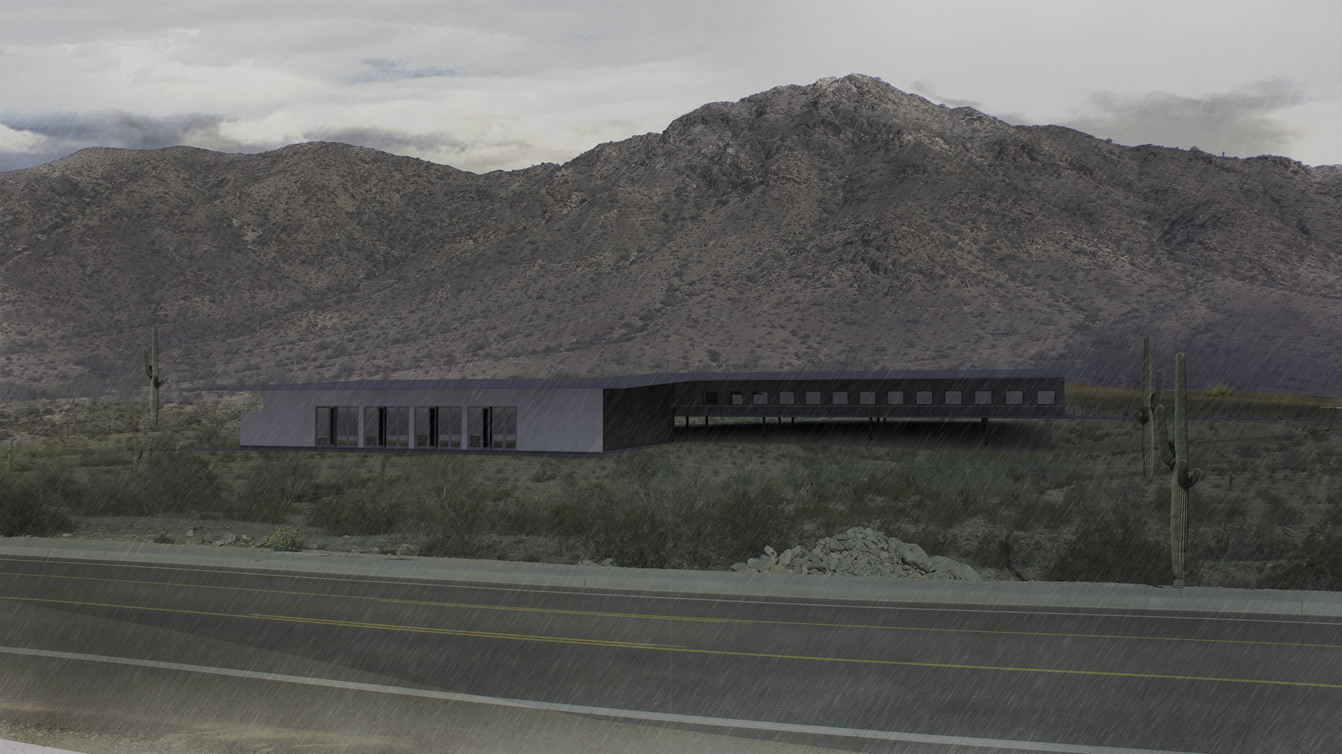 Fire Station 62, located on the south side of South Mountain, has many amazing features and elements to work with. The importance of this fire station being where it is, to support the growing community and maintain access to the nature preserve surrounding the site. Maintaining the natural landscape as much as possible was very important. Having two separate buildings, one for the fire trucks and one for the fire men but keeping a cohesive purpose as one operating system was done by having a single roof that overhangs both buildings. The living quarters is raised above the ground to minimize obstruction of the naturally flowing water during monsoon season and also floats above the wash to show respect to the watershed that is replenished from the South Mountain water flow.